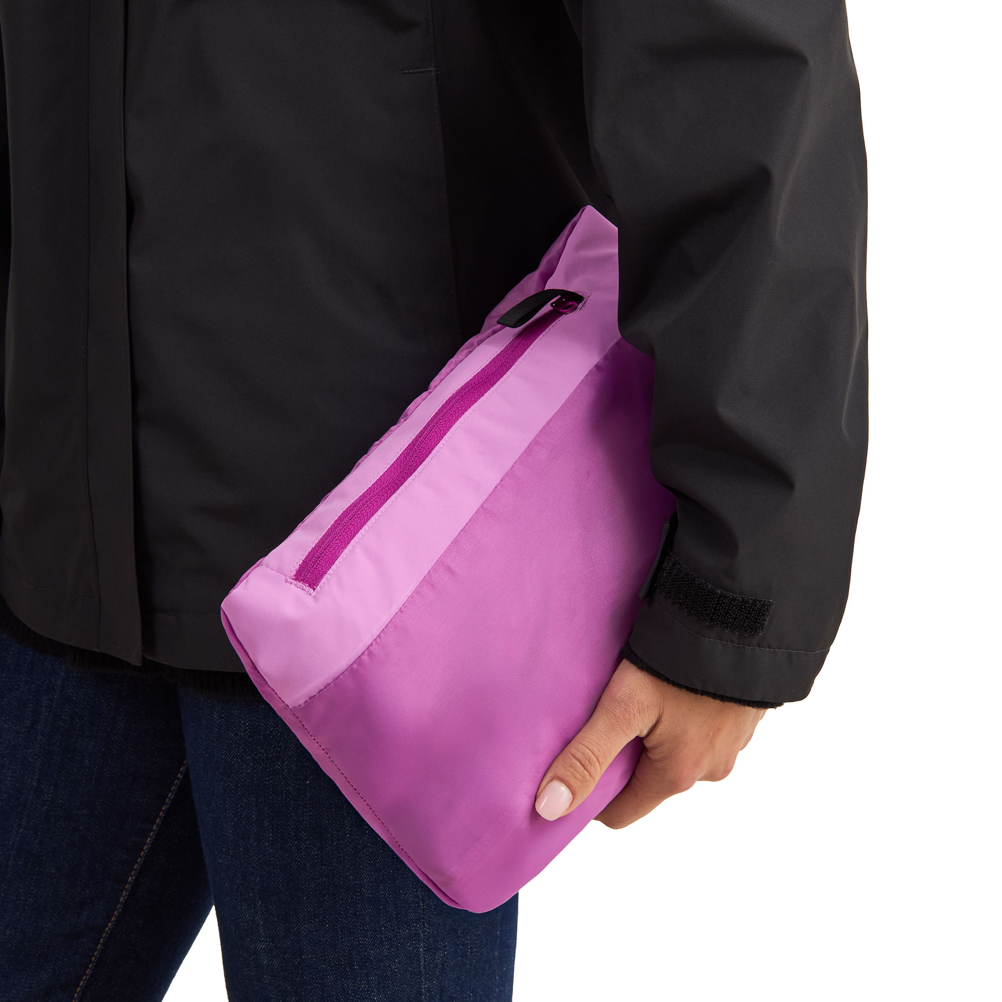 • Waterproof • Taped seams • Wind resistant • Breathable • Packable into its own pocket • Made with Atmodry® technology • Made from 50% recycled materials • Fixed hood with raincap to prevent raindrops from dripping on face • Hidden adjustable bungee cord at hood for a customized fit • Front placket to protect body from the rain and wind • Storm placket underneath center front zipper closure to stop wind from cutting through • Hidden zipper side pockets to safely store your accessories • Adjustable velcro sleeve tab at cuffs for a customized fit • Reflective logo branded detail at chest and back • Back flap for raindrops to drip away from body • Upper mesh lining for additional breathability • Interior welt zipper pocket for additional storage • Colour(s) Black, Pink • Made in Vietnam